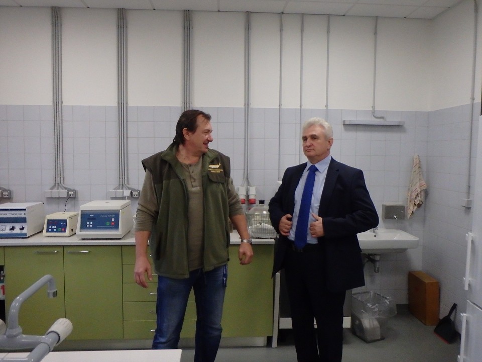 Naše oddělení navštívil velký rybář, známý herec a bavič Miroslav Donutil. Prohlídnul si pracoviště, a i když sám tvrdí, že ryby moc nejí, tak u nás mu tedy chutnalo. Při krátkém posezení v naší knihovně svou profesi nezapřel a všichni jsme se dobře bavili. (11.3.2016)