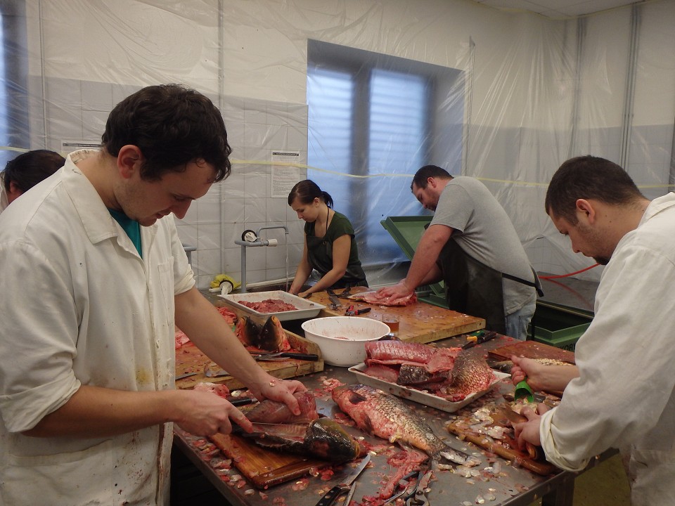 Druhý z workshopu pořádaných v rámci projektu OPVK. Navštívili jsme zpracovnu ryb Rybnikářství Pohořelice, sádky, odchovnu okrasných ryb a moderní prodejnu. Po návratu do Brna jsme absolvovali přednášku Doc. Buchtové o posmortálních změnách rybího masa a na závěr nám Eda Levý předvedl kulinářskou show. (13.11.2014)