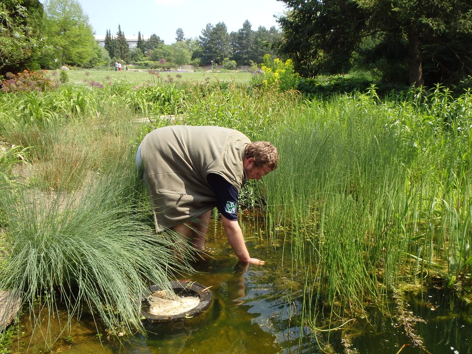 Cvičení z hydrobotaniky s nestárnoucím doktorem Hetešou. Šedesátileté zkušenosti s determinací sinic a řas se jen tak dohnat nedají. K ukázkám makrofyt využíváme i arboretum naší univerzity s poměrně dobrou nabídkou vodních rostlin. (25-27.5.2015)