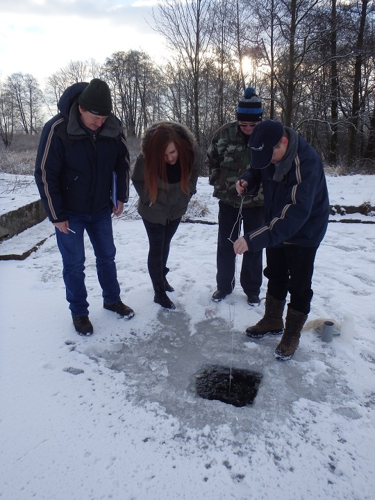 Letos jsme vyrazili na první "seznamovací" odběry již velmi brzy. Využili jsme na poslední roky poměrně mrazivého počasí a možnost odebírat z ledu k prvotnímu odběru sedimentů na rybnících, které plánujeme letos vzorkovat. Bylo super zase vyrazit do terénu a zima vůbec nevadila. (21.1.2016)