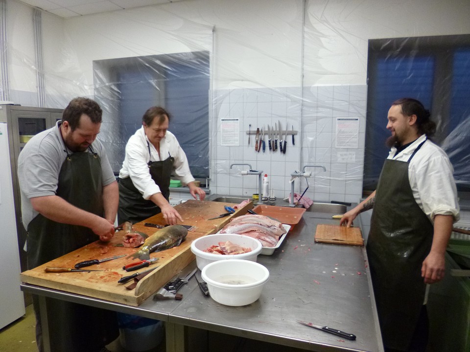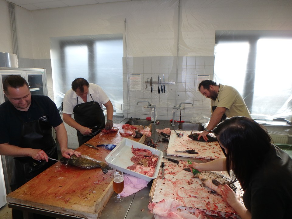 Zpracování ryb a předvánoční posezení na Oddělení rybářství a hydrobiologie pro pozvané hosty z řad současných i minulých zaměstnanců univerzity, spolupracujících organizací a dalších dobrých lidí. Tentokráte pod důkladnou kontrolou malé "rybářky", jenckovy Viktorky.