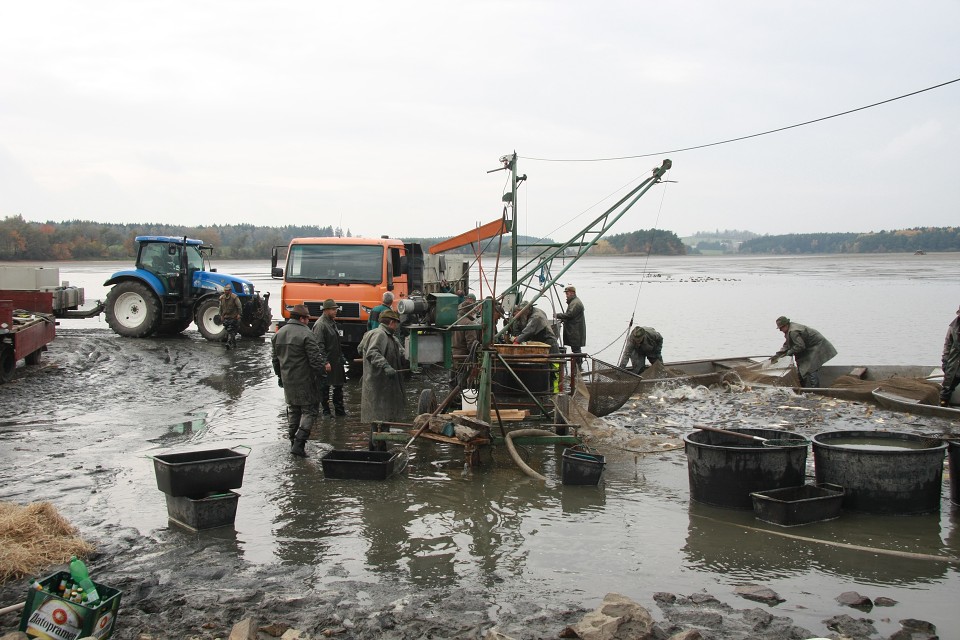 S Honzou a Slávkou jsme jeli odebírat krev ryb z výlovu rybníka Holná u Kardašovy Řečice. Počasí bylo pěkné, ryb spousty, tak si Slávka s Honzou pěkně zapíchali. Ryby jsme pak zpracovávali až do půlnoci. (24.10.2009)