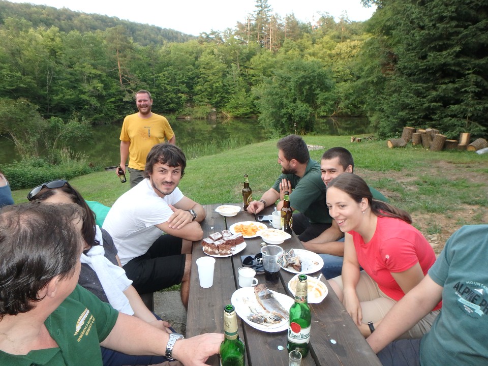 Oslava státnic na Brněnské přehradyě u hradu Veveří. Počasí vyšlo, piva bylo dost, jídla taky. Vždy rádi vidíme i bývalé absolventy rybářského oboru, kteří se přijedou podívat.