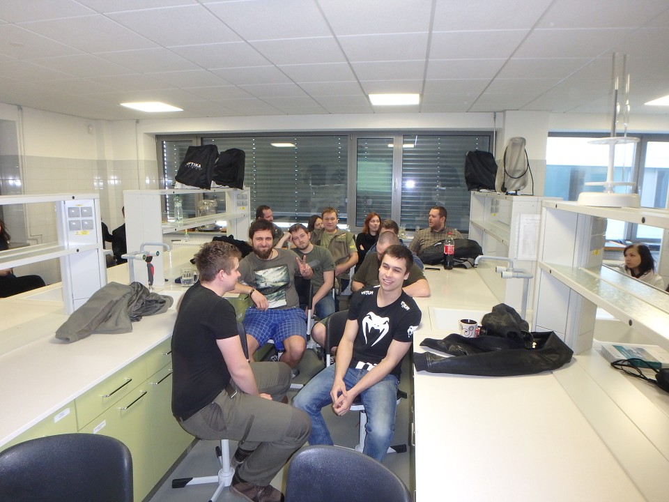 V našich nových prostorech proběhlo setkání doktorandů agronomické fakulty. Plánovalo se, že se setkají především noví doktorandi, ale těch moc nedorazilo. Alespoň se poprvé využila naše nová chemická cvičebna. (8.10.2013)